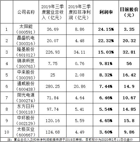 光伏企业发展势头及市场十分利好,下面笔者为大家选取整理了中国国内太阳能公司2019年前三季度企业盈利率排名前十的,最具投资参考价值的股票给大家。
