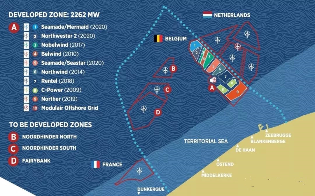 到2020年底,比利时大约会有400台海上风机投运,总装机容量2.26GW。根据比利时新的海域规划,还将新增1.75GW,总量达到4GW,大约可以供应全国一半的电力。由于风电的不稳定性,在电网负荷较轻时,往往会有超发电量,将这部分电量用于电解水,产生氢气并储存起来,便于在需要时使用,也便于运输。通过绿色能源制成的氢气,也被称为“绿色氢气”。