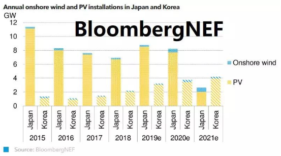 02、日本的大型光伏市场将迎来补贴取消之前的最后一场“光伏潮”,而韩国光伏市场在全国性竞价规模扩张、储备项目充裕的支撑下,也可能见证持续稳定增长。