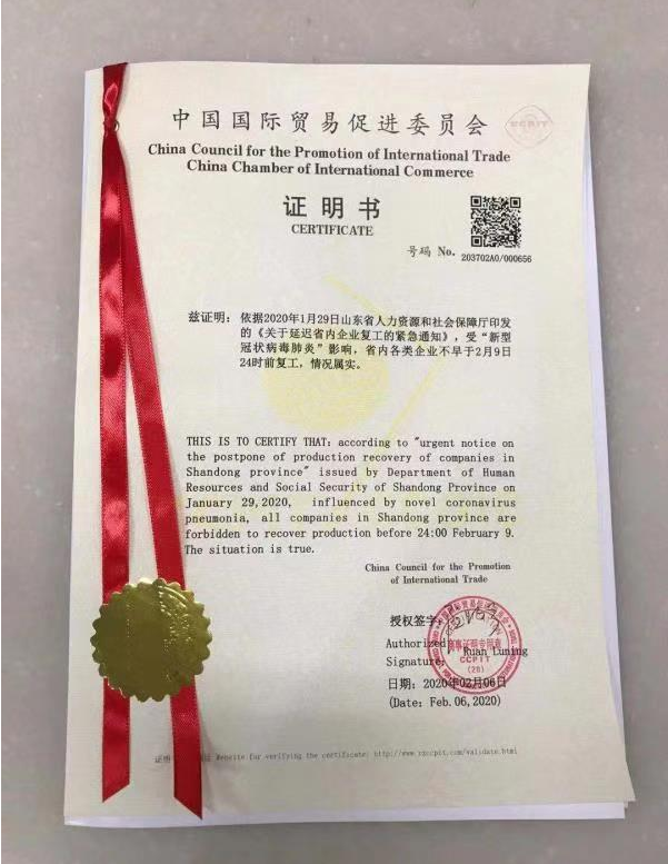 青岛市贸促会为企业出具首批疫情不可抗力事实性证明