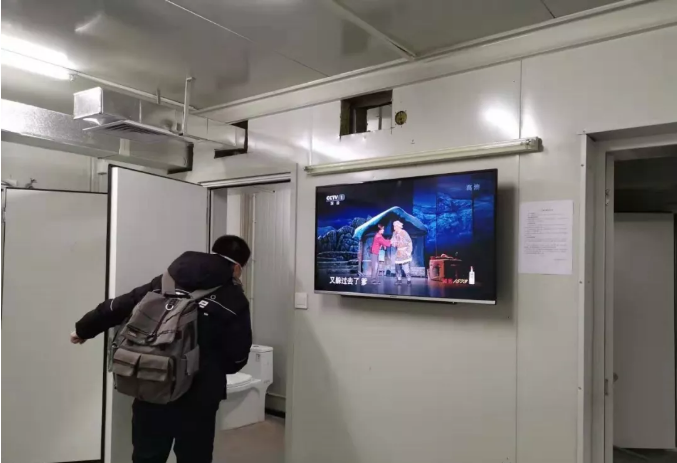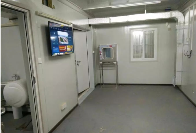 每个病房空调、电视安装到位,房内还有独立卫生间,间内的角落里面有淋浴。据介绍,卫生间有24小时热水,独立卫生间废水进行集中汇集和处理。