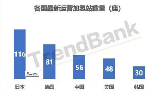 在加氢站方面,据TrendBank最新数据(截止2020年1月17日),日本加氢站数量全球最多,为116座;德国81座;中国运营56座;美国48座(公开运营,Plug power自建及客户自建站总数超100站,不含在内);韩国30座。
