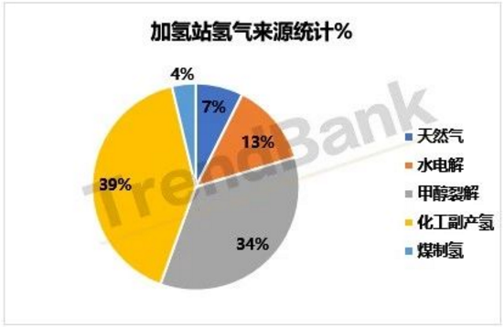 目前,氢气供应主要以高纯氢供应为主,利用的是原有高纯氢装置富余量,新增装置产能慢慢进入,来源主要为工业副产氢。根据TrendBank预测,可再生能源结合水电解制氢将是未来的发展方向,副产氢利用属于过渡阶段。