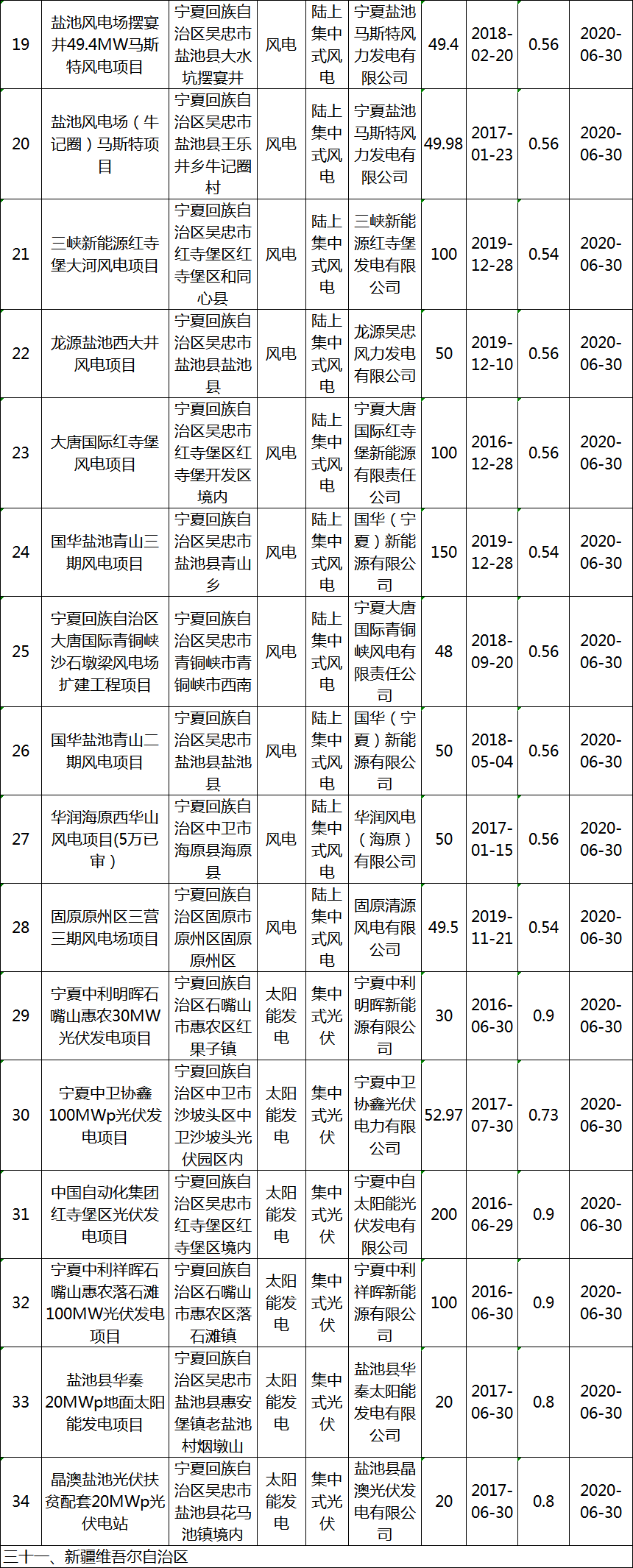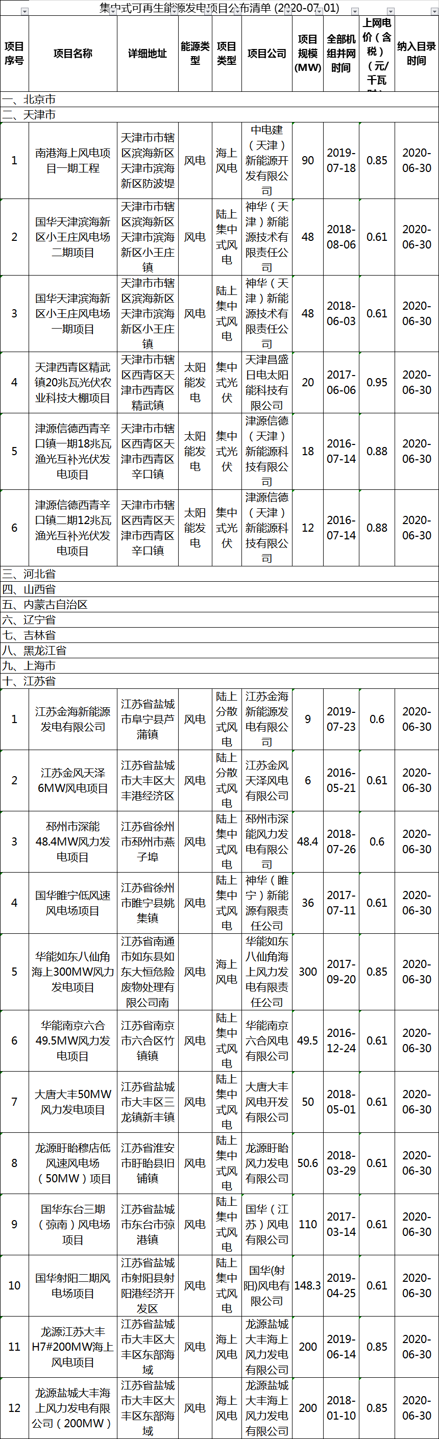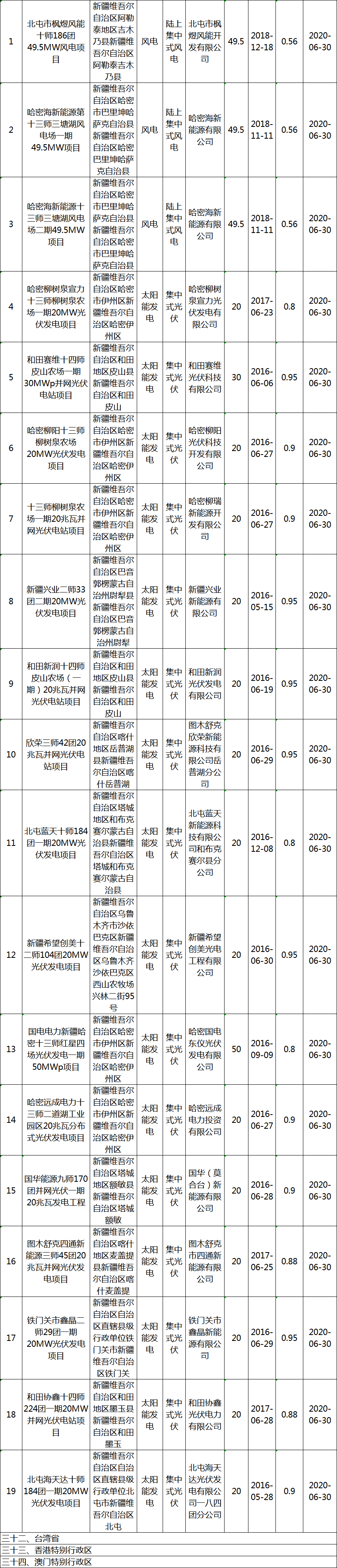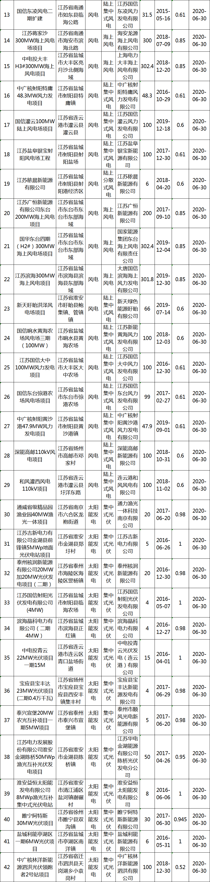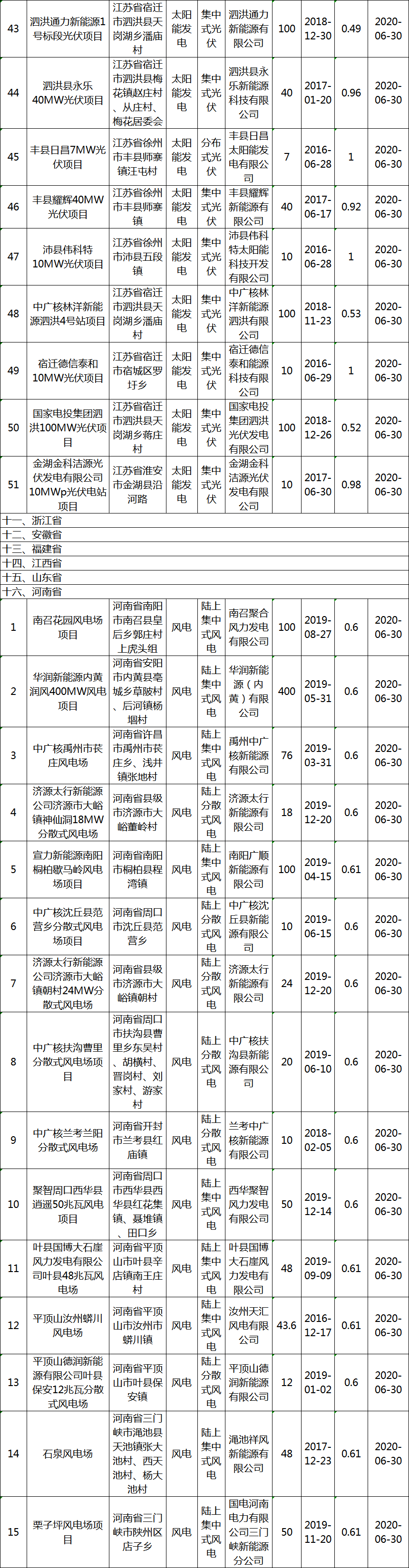 关于公布2020年第一批可再生能源发电