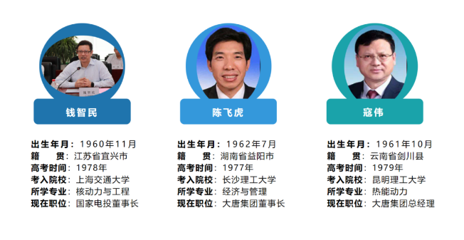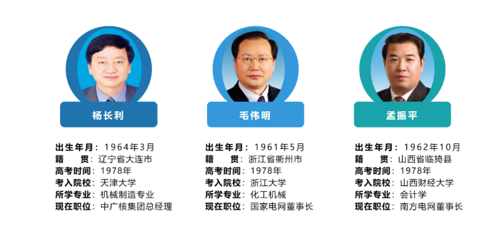 不同于互联网领域的知名企业家马云,高考数学考了1分,复读三年考入大学,电力大佬们均是学霸。
