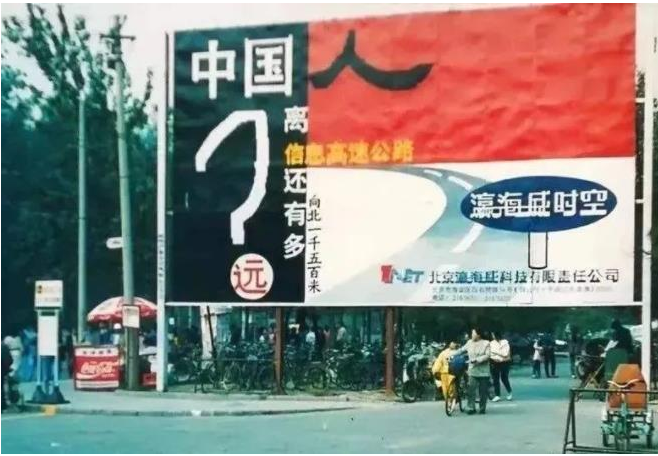 最后再说一个故事,当年那些聪明人纷纷买了比尔盖茨的《未来之路》,最后真的按照比尔说的“信息高速公路”去做的某个人,成立一家公司叫做瀛海威,它的广告牌当年极其具有感染力,如下图: