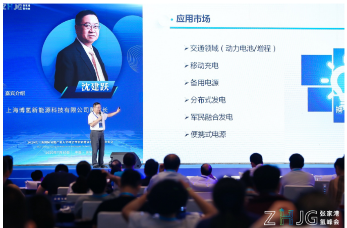 中国现代化发展面临的两大现实难题是能源安全和环境污染。而以绿色环保的清洁能源著称的氢能源,已成为国际新能源领域发展的一支强有力的生力军,成为全球能源格局调整与气候变化应对的新希望。上海博氢新能源科技有限公司董事长沈建跃现场做了《实现多元化的氢能社会》的主题分享。他说:“甲醇重整氢燃料电池,它将来的市场是可代替汽柴油发电机的,这是很大的一个市场,不仅仅是在交通领域。