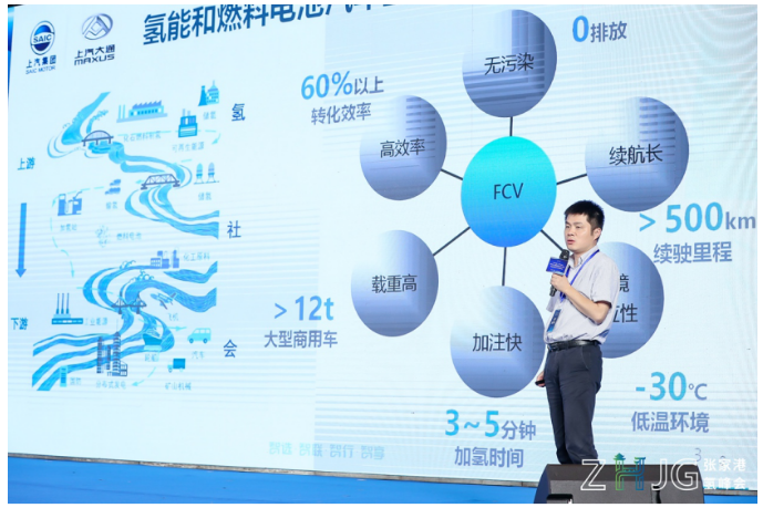而国内最早投入并持续投入的燃料电池整车企业,也是目前国内唯一具备燃料电池乘用车和商用车技术和生产能力的企业——上汽大通代表也来到现场,上汽大通燃料电池平台总经理高辉强分享了上汽“新四化:电动化、智能网联化、共享化、国际化”的战略引领,提出三箭齐发,推进燃料电池产业化;并发出共建燃料电池产业化的“朋友圈”的呼吁。