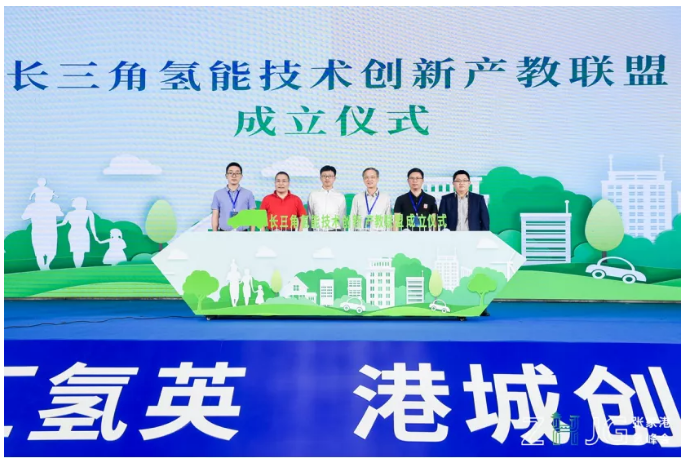 除了政策的保障、人才的支撑,为进一步打造氢能产业创新与人才培养的合作平台,多家机构共同发起成立了长三角氢能技术创新产教联盟,飞马旅上海发起人、黑苹果青年公益理事、全球商会网监事会主席赵心耘;世纪新能源网主编张松;江苏公爵新能源汽车有限公司董事长周祥;添橙资本合伙人罗纯;中科院大连化学物理研究所张家港产业技术研究院院长、苏州市氢能产业创新中心常务副主任韩涤非;光束汽车有限公司人力资源与行政总监孟良作为联盟发起单位的代表,一同登台,共同见证长三角氢能技术创新产教联盟的成立。