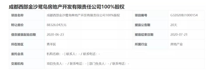 据了解,成都西部金沙鹭岛注册资本为5000万元,经营范围为房地产开发、建筑装饰。2020年前4月,成都西部金沙鹭岛净亏损298.66万元;截至2020年4月30日,成都西部金沙鹭岛资产总计61997.21万元,负债总计845.69万元,所有者权益61151.52万元。