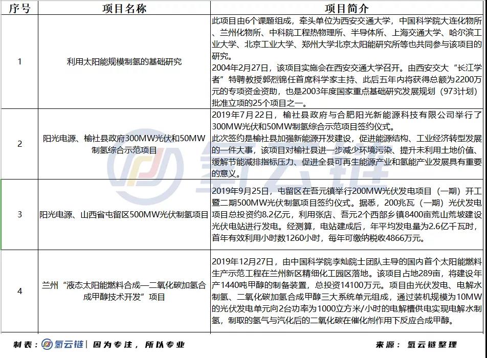 据氢云链统计,目前,我国稳步推进的光伏制氢项目已有近10项。