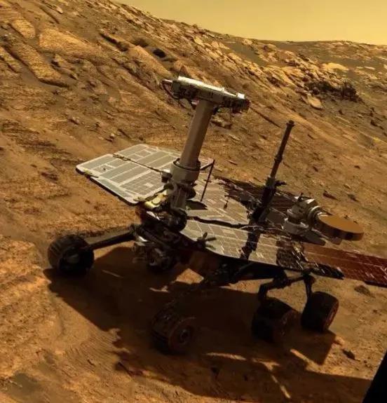勇气号火星探测器于2007年拍摄的机遇号运行了5250天后体检拍摄其太阳能发电板,仍正常工作。