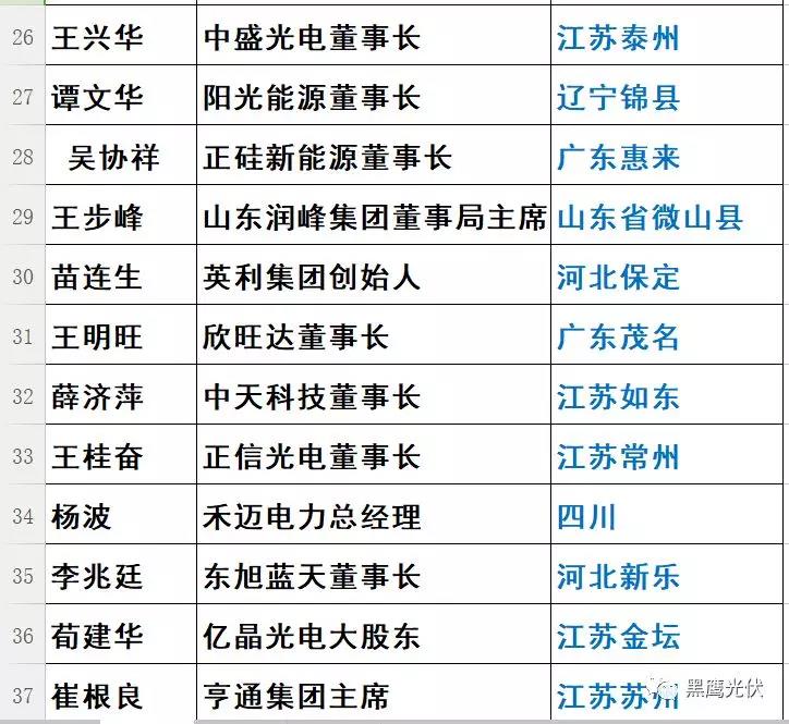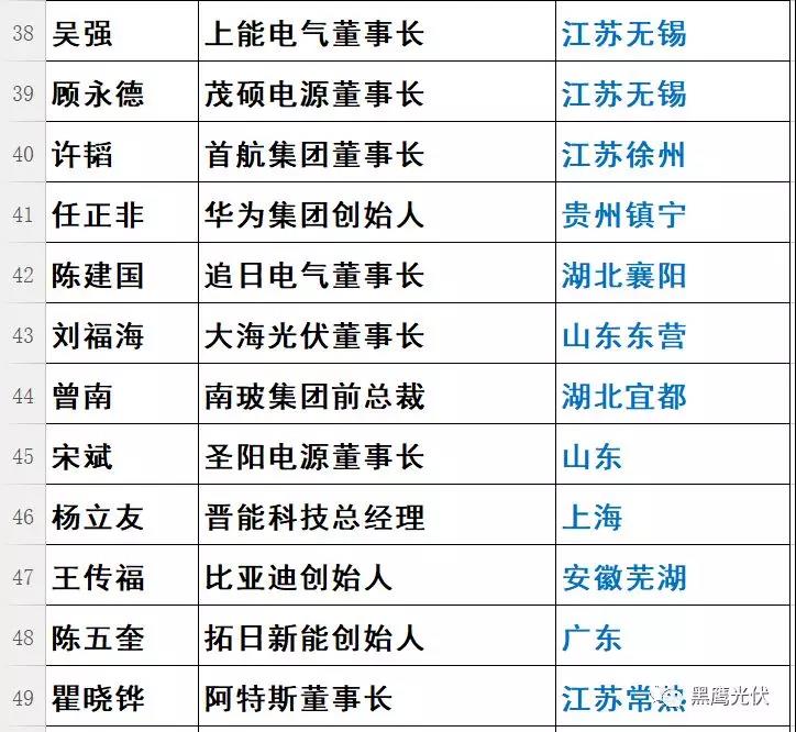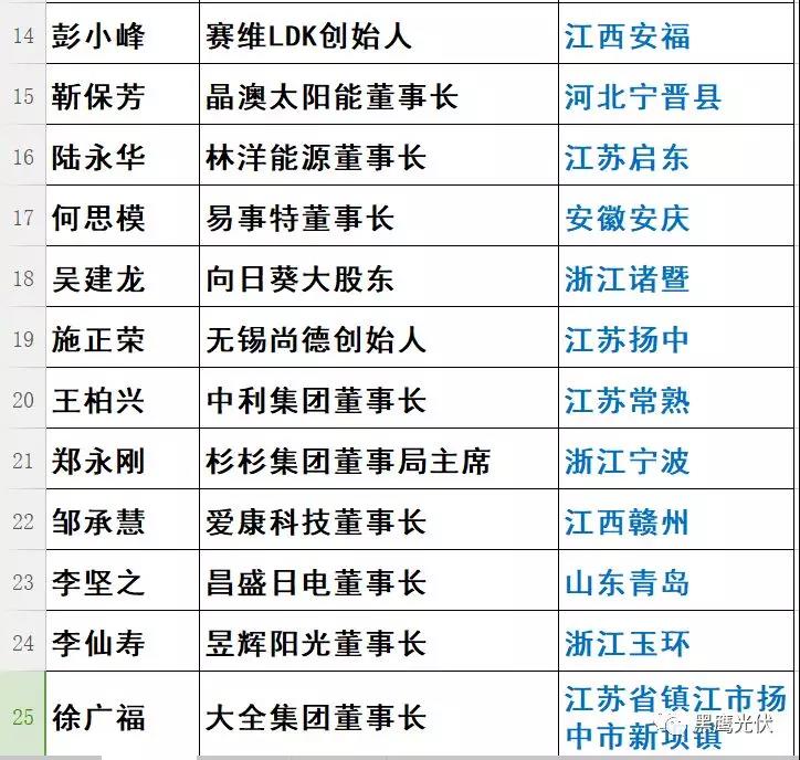 另一光伏巨擘天合光能的董事长高纪凡,1965年出生于江苏省常州市,他领导下的天合光能是全球太阳能发电行业的领军者之一。此外,李仙德,李仙寿和李仙华三位兄弟当年创造的光伏佳话早已为业内所知。