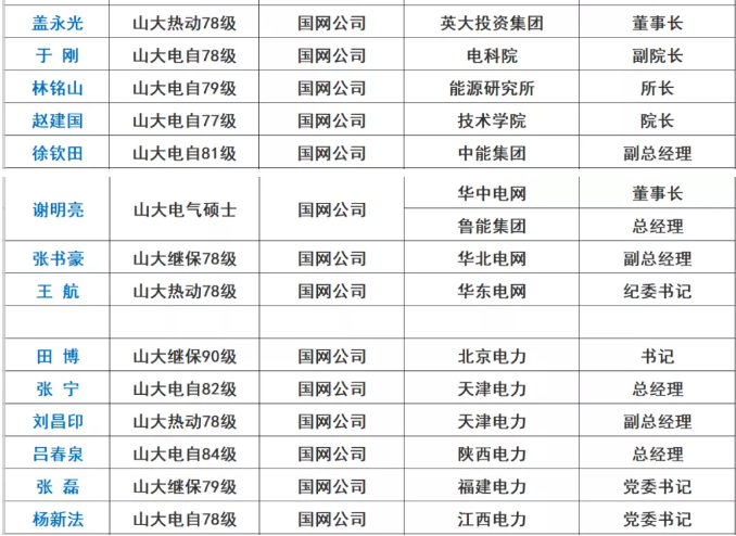 三、从学校出身看:山东大学电气学院(前身山东工学院),在上述将近百名司局级以上干部中,贡献了2/3左右的人才,堪称中国电力“山东帮”的黄埔军校,“上过山工大”也成为电力行业干部们私下流传的升官经。