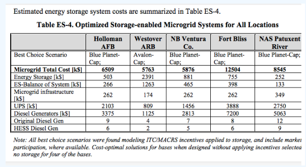 研究人员指出,采用磷酸铁锂电池的储能系统由于使用寿命长、自放电率低而成为四个军事基地的最佳储能方式。出于同样的原因,液流电池被认为是韦斯特弗空军基地的最佳电池储能系统。