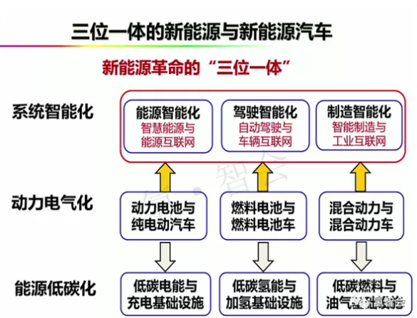 愿景从哪儿看?我们从三大革命看新能源汽车,包括动力电气化革命、能源低碳化革命和系统智能化革命。我先说动力电气化革命,它是不限能源,也可以用化石能源,也可以用可再生能源,只是谈动力本身,从这个角度看有三种动力,油-电混合动力、纯电动动力、氢能燃料电池动力。三种动力目前是工程科技前沿领域,去年工程院评审动力电池、燃料电池、氢能可再生能源、电驱动都是多次被提及。