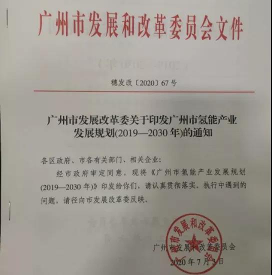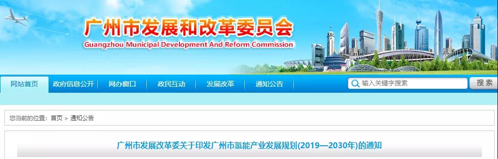 广州市人民政府发布《广州市氢能产业发展规划(2019-2030)》