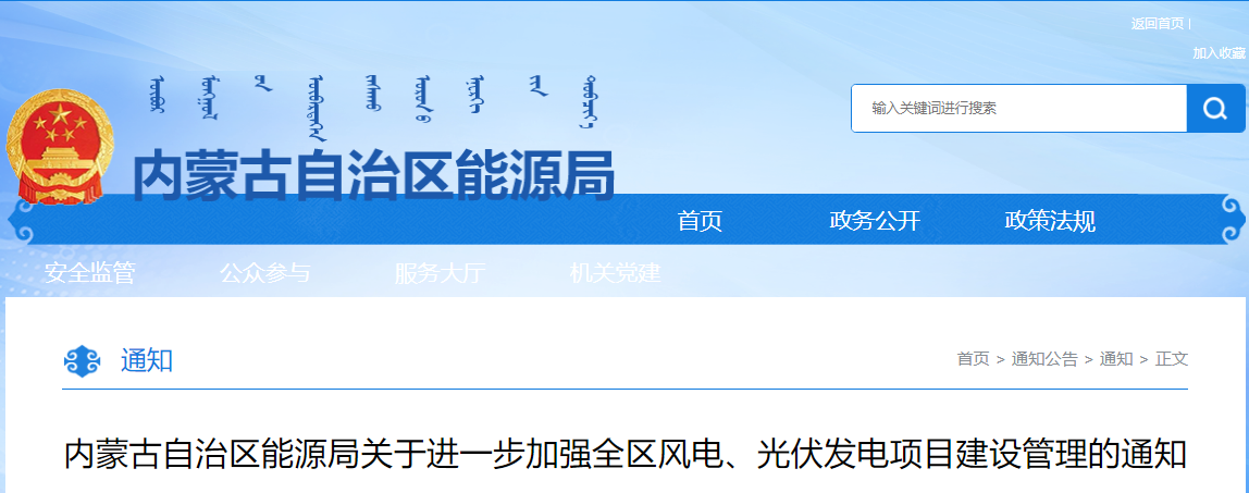 日前,内蒙古能源局发布关于进一步加强全区风电、光伏发电项目建设管理的通知,通知指出随着行政审批权限的下放,部分地区不同程度地出现了风电、光伏发电规划执行不严格,核准、备案管理不规范,事中事后监管不到位等问题。为进一步加强风电、光伏发电建设管理,推动自治区可再生能源高质量发展。