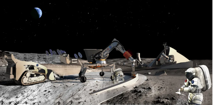 2018年,美国科罗拉多矿业学院George Sowers和其他十几位科学家在《Reach》杂志上发表了一篇论文,描述了一种提取月球水冰的方法。一个顶部有凹面镜的大塔竖立在火山口边缘,将阳光反射到极地的永久阴影区域——月球土壤被加热到220 K(-53.15℃)后水冰升华为水蒸气。覆盖在土壤上的帐篷会捕获这种水蒸气,并将其移动到大型铝制单元中冻结成冰。系统会将冰运送至净化设施中分解为氢和氧,并最终液化。美国加利福尼亚的OffWorld太空机器人公司表示,水冰开采有望成为一个完全自主的过程,由一群人工智能机器人来运行。