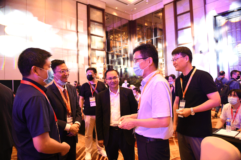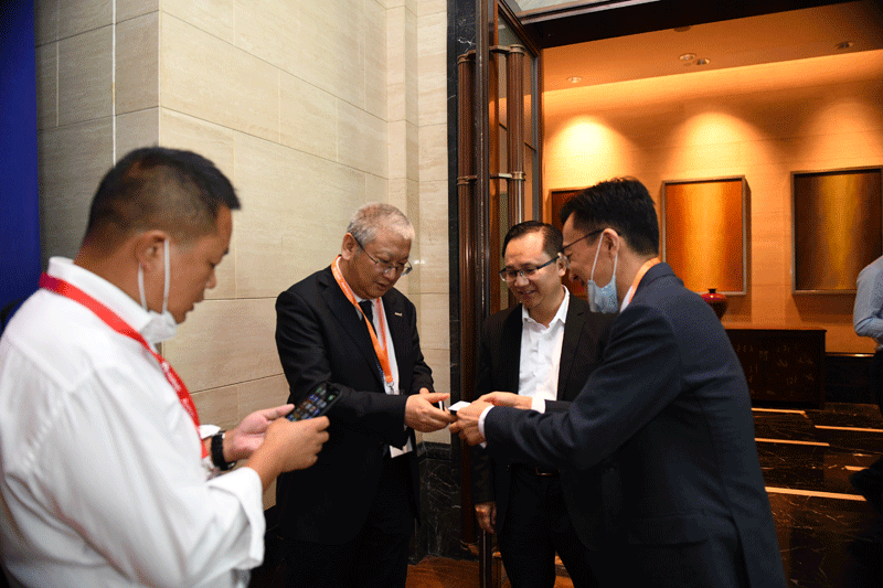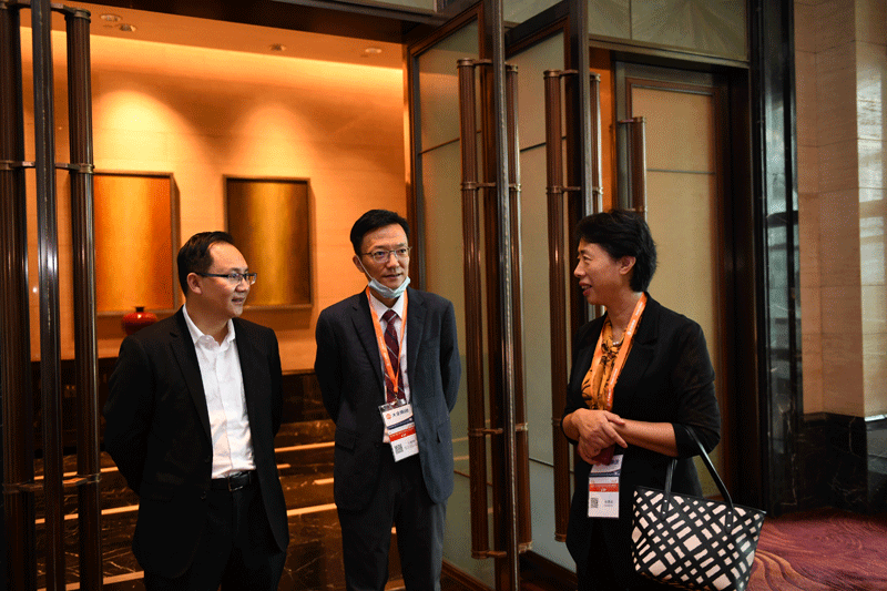 王毅勃、余才志与参会者们亲切交谈,互换名片