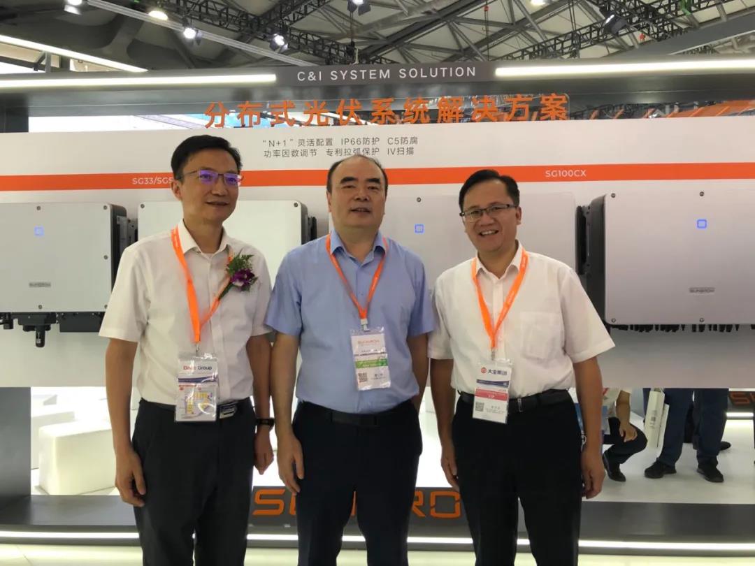 王毅勃、余才志与阳光电源董事长曹仁贤在阳光电源展台合影留念
