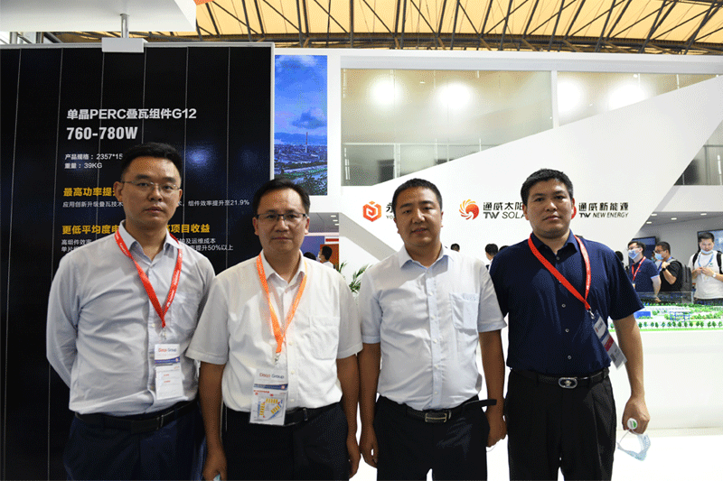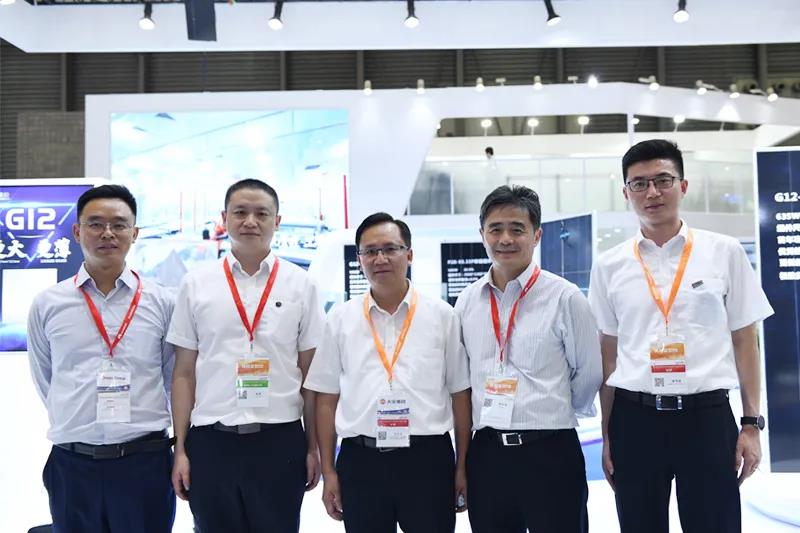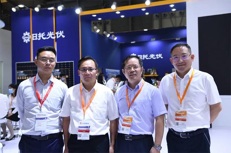 日托光伏总裁张凤鸣博士、副总裁李军与余才志一行在日托展台前合影