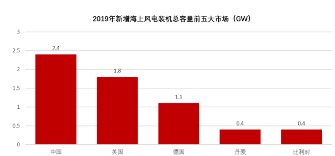 中国连续两年领跑世界风电安装市场。去年是全球海上风电发展在过去10年中最好的一年,全年新增6.1GW的装机容量,大多增长来自于新生市场。中国去年海上风电安装创历史记录,达到2.4GW,占比约为39%,位列全球第一。英国和德国随后,分别是1.8GW和1.1GW。