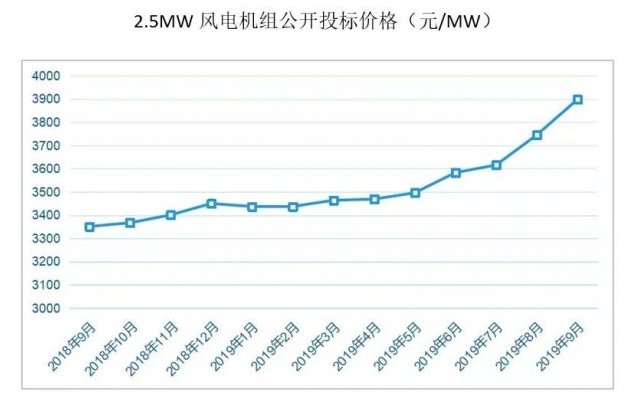 因为从整机商角度而言,年初风机价格跌到了低谷。据有关报道统计,最低价是2850元/千瓦,在2018年11月的一次招投标中报出,刷新了风机价格的新低。