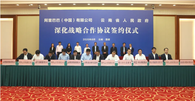 8月17日,省委书记陈豪、省长阮成发在昆明会见阿里巴巴集团董事会主席兼首席执行官张勇一行,省委常委、常务副省长宗国英,省委常委、省委秘书长刘慧晏,副省长王显刚、陈舜参加会谈并见证签约,省政府秘书长杨杰主持签约仪式。