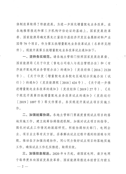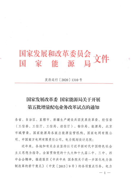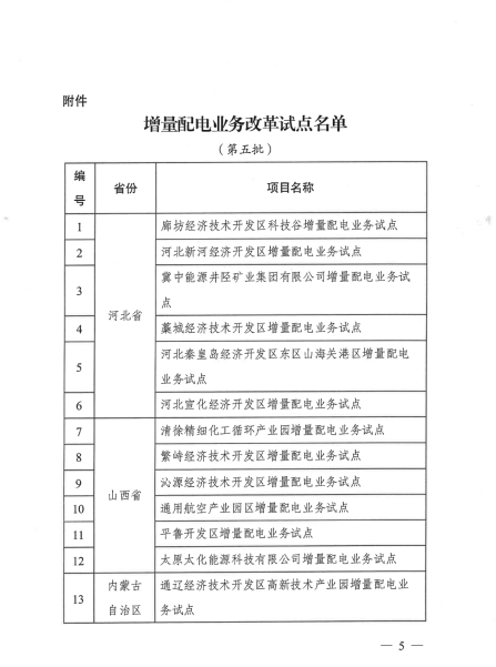 北极星售电网获悉,为进一步深化增量配电业务改革,在各地推荐报送和第三方机构评估论证的基础上,国家发展改革委、国家能源局确定黑龙江富拉尔基经济开发区金属新材料产业园等79个项目,作为第五批增量配电业务改革试点(名单详见附件)。至此,增量配电业务改革试点扩围至459家。