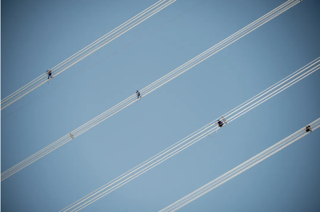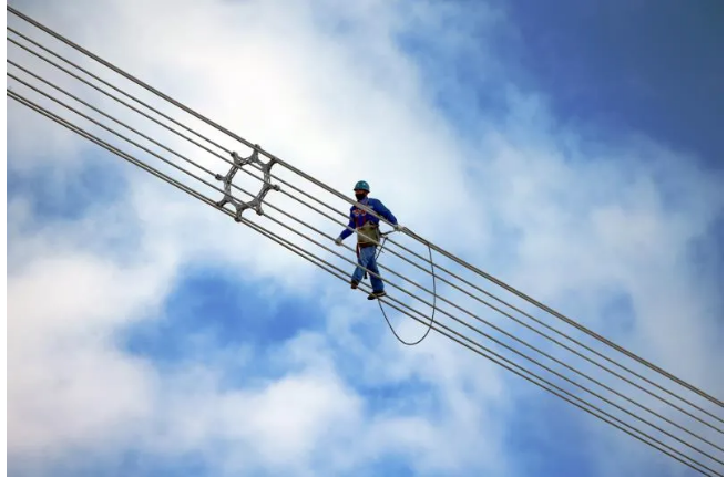 ▲国网冀北电力北京送变电公司施工人员在进行线路附件安装。李峥/摄