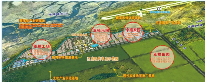 这个突出幸福田园、幸福乐园、幸福工场、幸福家园“四大板块”,建设现代农业示范推广、青稞全产业链、光伏产业示范、研学旅游养生、藏家风情体验、空港服务产业“六大基地”的江当现代生态产业示范园,正是青岛以产业支援桑珠孜区发展,补全当地产业链条、推进高质量发展的主战阵地。