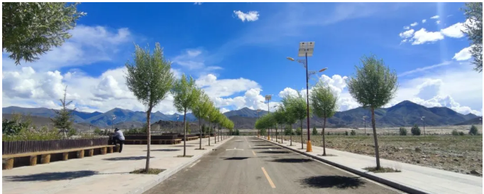 对于许多像加措一样的搬迁农牧民来说,这个产业园不仅是他们的工作地点,更是他们的新家。出了工厂大门向东走两公里就是产业园的另一部分——江当小镇,来自日喀则9个县区的1651名搬迁农牧民就生活在这里。