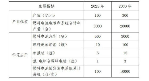 其中,在发展目标上,2020 年至 2025 年为我市氢燃料电池产业快速成长期。龙头企业成长为国内燃料电池行业头部企业,燃料电池产品的研发和 制造能力全面提升,关键产品和工艺技术接近国际先进水平;初步培育形成氢能和燃料电池产业集群,成为长三角区域重要的研 发和制造基地;氢能综合利用技术研发取得突破,初步实现应用 场景的多样性和多元化。