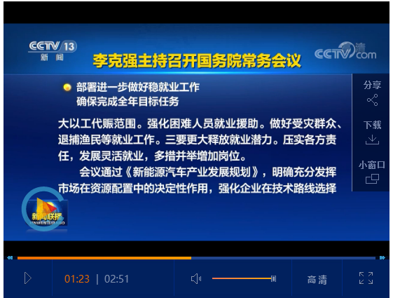 李克强主持召开国务院常务会议:通过《新能源汽车产业发展规划》 培育壮大绿色发展新增长点