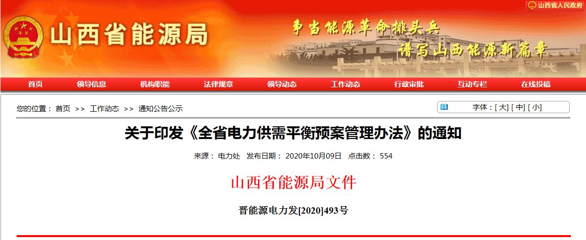 关于印发《全省电力供需平衡预案管理办法》的通知