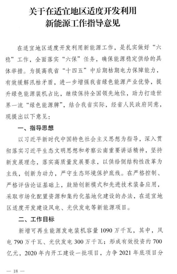 以下是云南省发展和改革委员会 云南省能源局关于在适宜地区适度开发利用新能源工作指导意见全文: