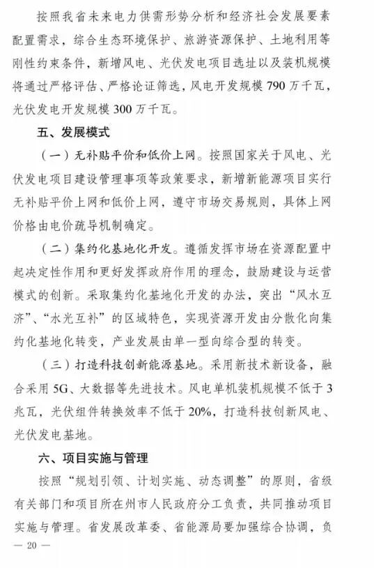 《规划》进一步明确:新增可再生能源发电装机容量1090千瓦,其中,风电790万千瓦、光伏发电300万千瓦,形成有效投资约700亿元,2020年内开工建设一批项目,力争2021年底项目分期分批建成投产。