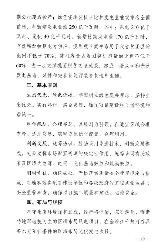 《规划》提出,绿色能源装机占比和发电量继续排名全国前列,年新增发电量250亿千瓦,其中,风电210亿千瓦时、光伏40亿千瓦时。