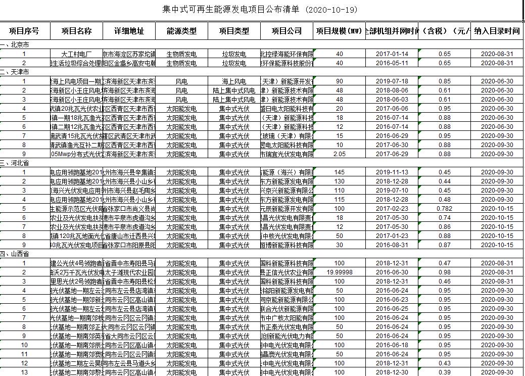 2020年第五批可再生能源发电补贴项目清单公布