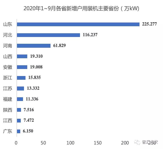 2020年1~9月,户用新增装机前十名的省份的如下图所示。