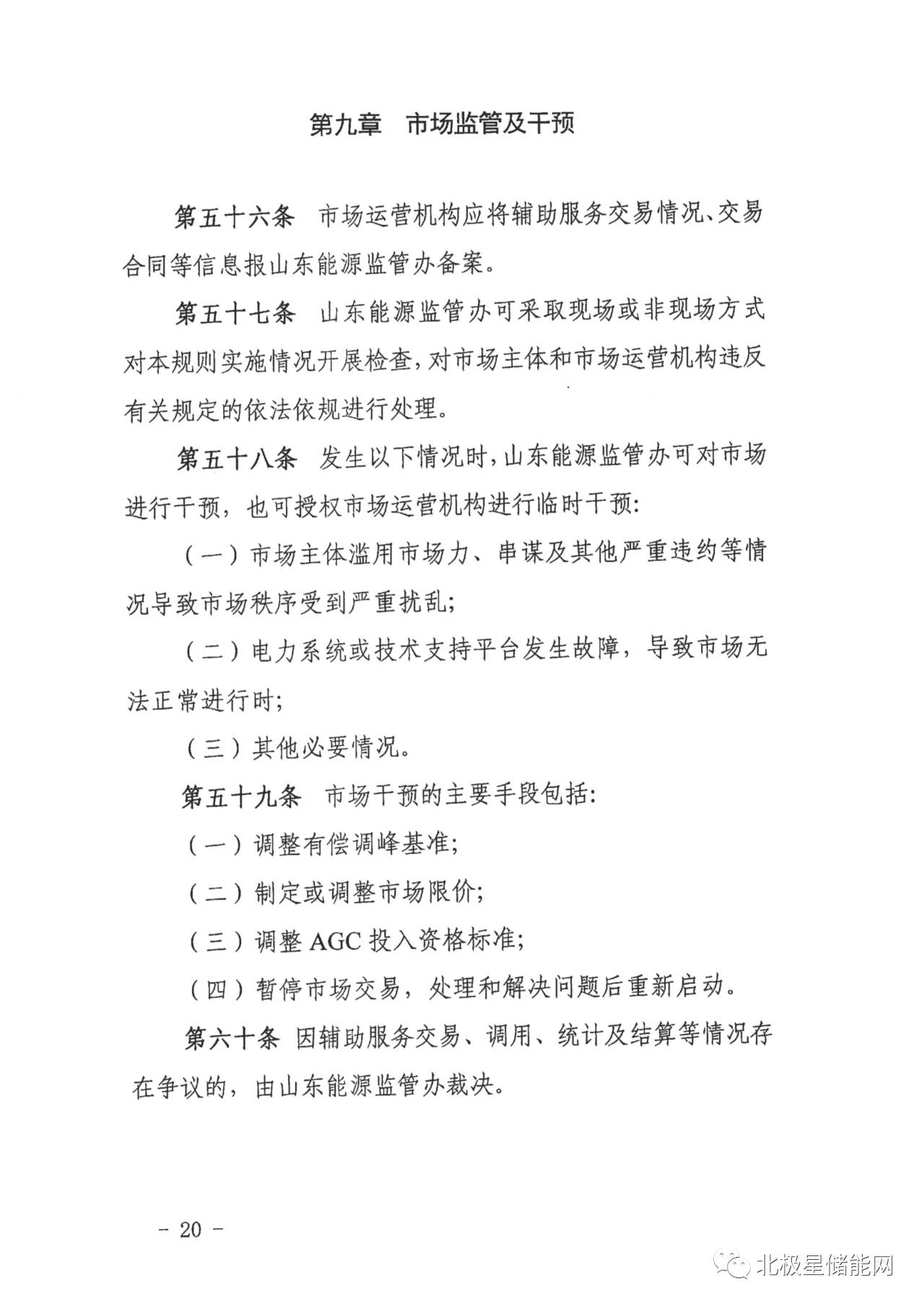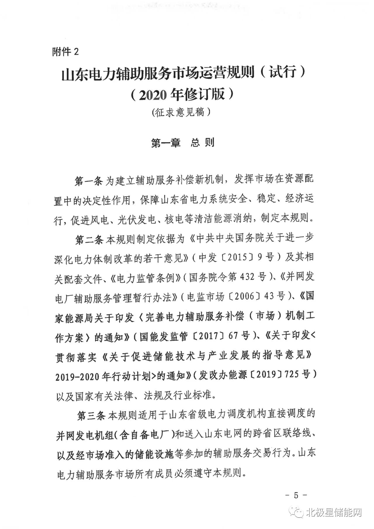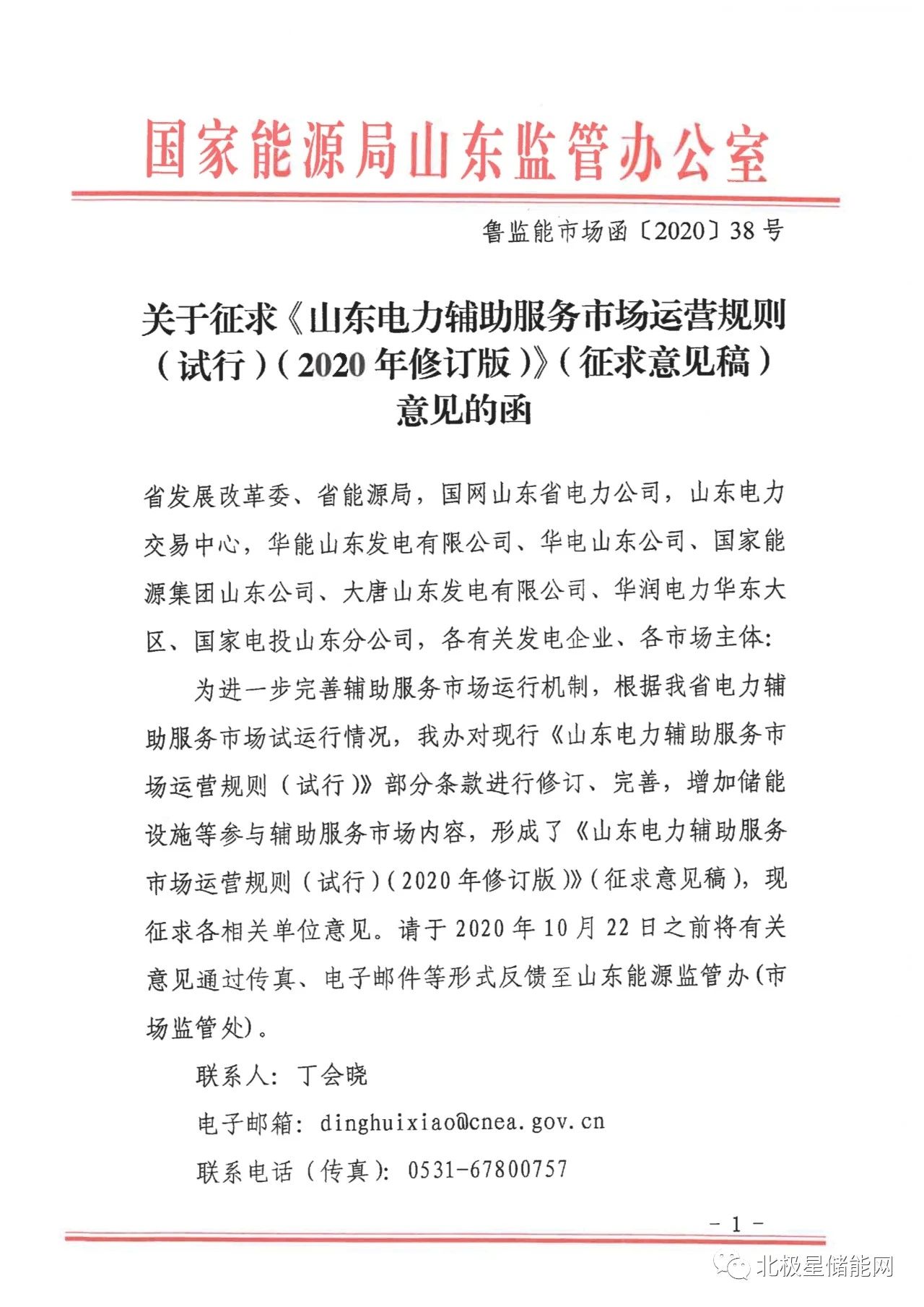 10月20日,国家能源局山东能监局发布《山东电力辅助服务市场运营规则(试行)(2020年修订版)》(征求意见稿),意见稿在发电机组相关定义中新增储能设施、并新增储能设施调峰交易章节内容,其中指出规模在5MW/10MWh及以上独立储能设施、集中式新能源场站配套储能设施等均可参与。