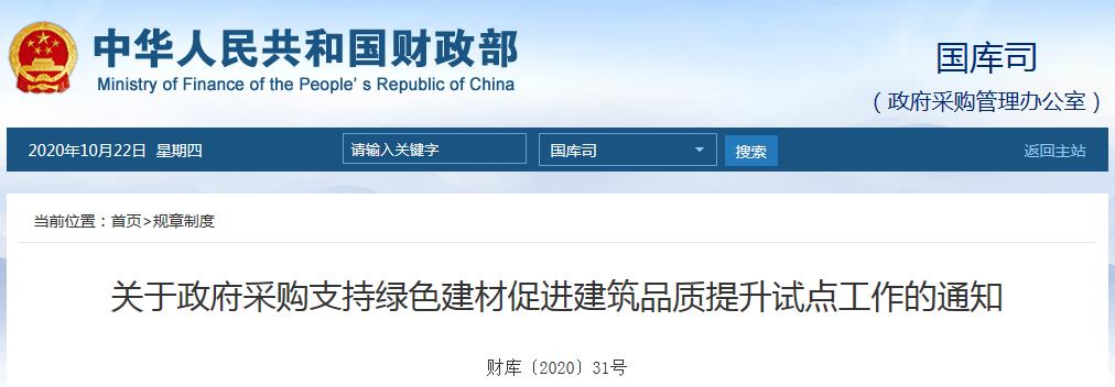 财政部、住建部联合发文:政府采购支持绿色建材促进建筑品质提升试点工作