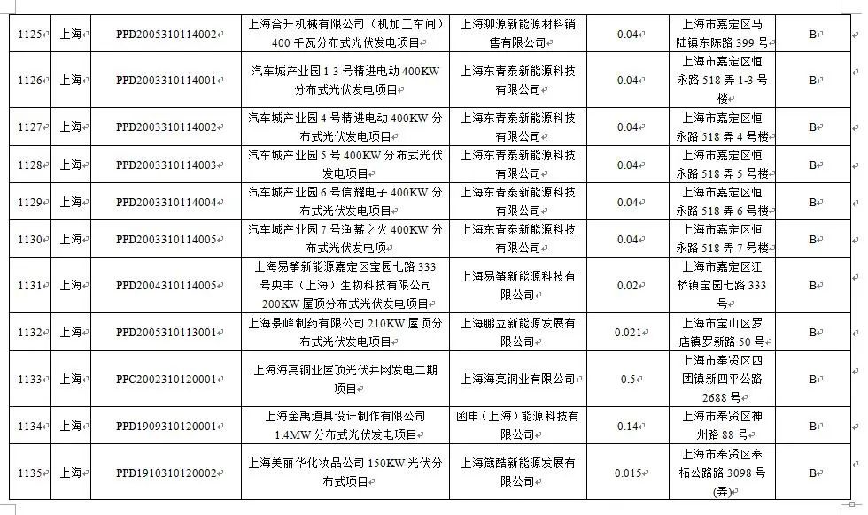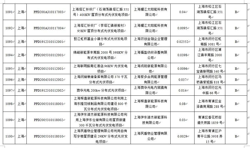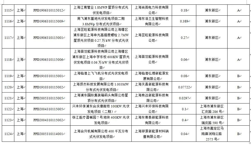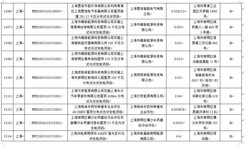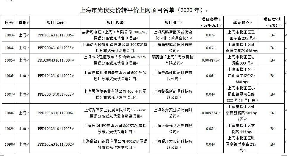 上海市发改委:2020年光伏竞价转平价上网名单公布