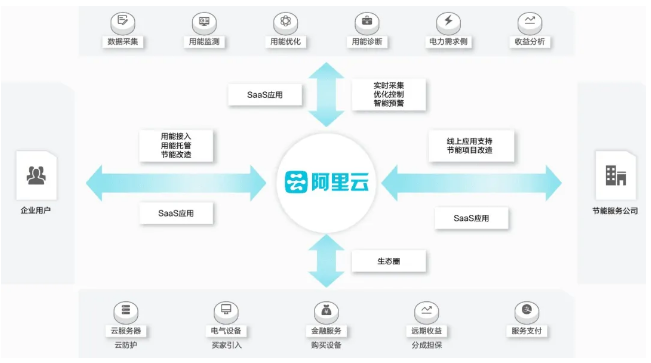 阿里云综合能源服务平台解决方案以“厚平台、微应用”方式构建面向竞争性综合能源服务的业务中台,快速构建节电节能、电力需求侧、电务、能效管理、储能、微网一体化和能源电力交易等生态化应用。