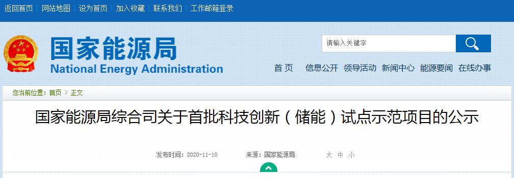 国家能源局:首批科技创新(储能)试点示范项目名单出炉
