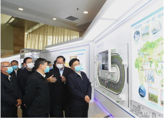 孙金龙、黄润秋一行首先参观调研了国家电网改革发展成就,仔细了解国家电网运营及大数据助力污染防治攻坚战有关情况。
