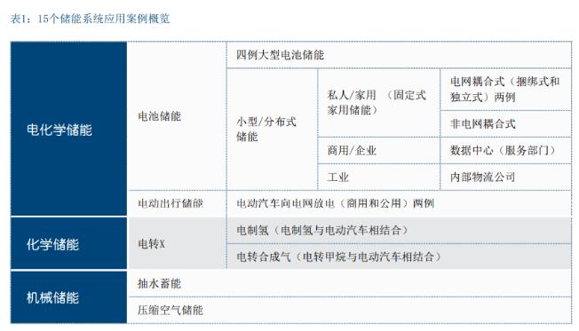 在本报告第四章中,我们将选择15个储能系统的应用案 例(其中大部分是德国案例)进行详细分析。表1展示 了入选案例分属的类别: