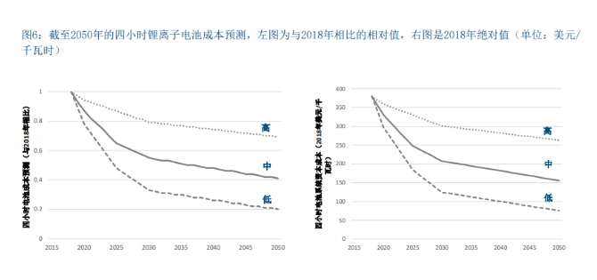 参考文献[8]也展示了有关储电系统成本的详细介 绍。这些储能系统发展迅速,最突出的是基于锂离 子电池的电池储能系统(图6)。到2030年,电池储能成本与2018年相比平均可以减少一半,甚至可 减少至原来的三分之一([12])。