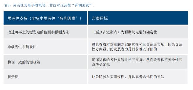 此外,还有一些非技术因素可以改善灵活性,例如提高 预测能力或改进非歧视性市场设计(表3)。例如,市 场设计在建立合适的框架条件中发挥着重要的作用,在 这些框架条件下可以广泛采用灵活性方案。监管框架应 为非歧视性能源市场准入提供便利,并确保投资安全。